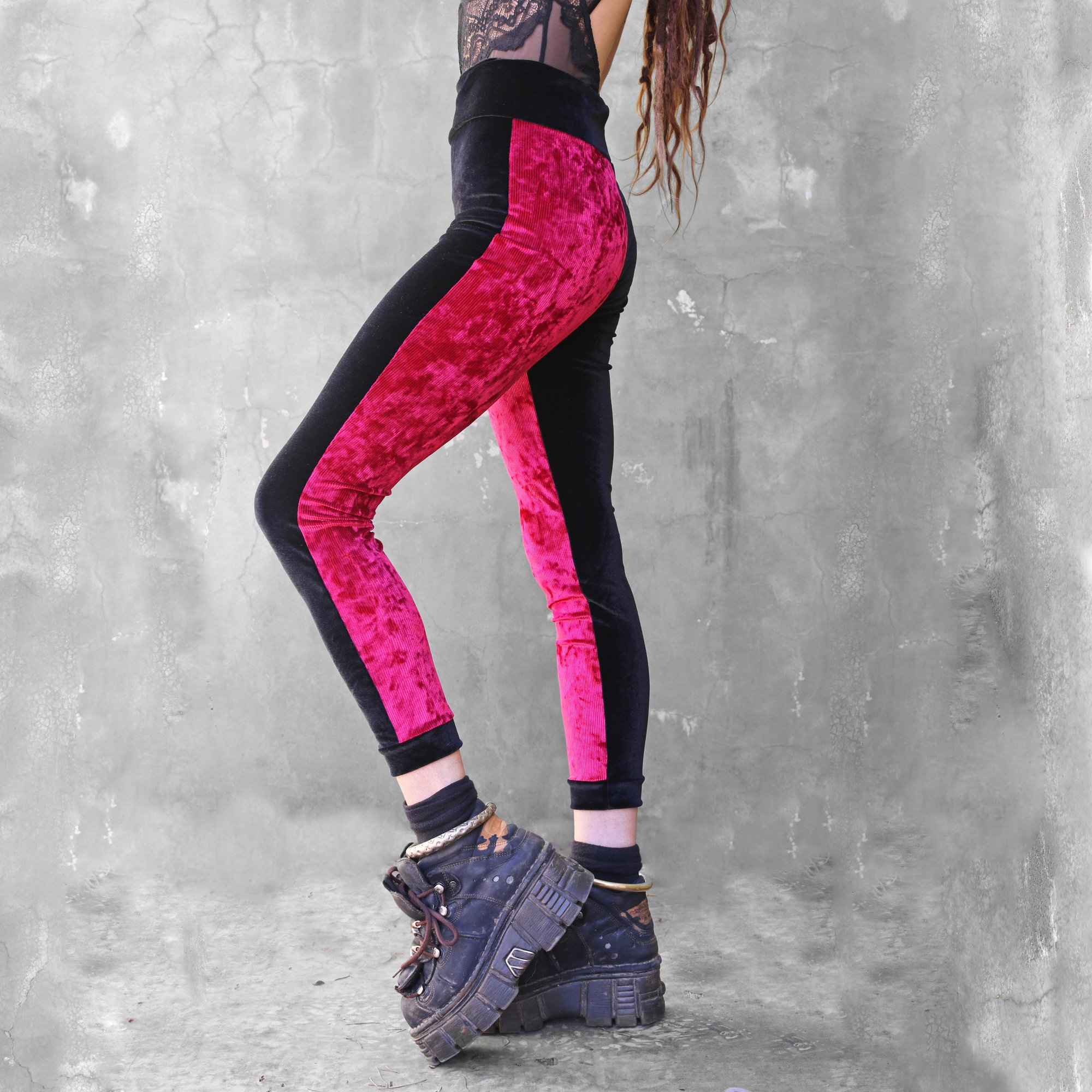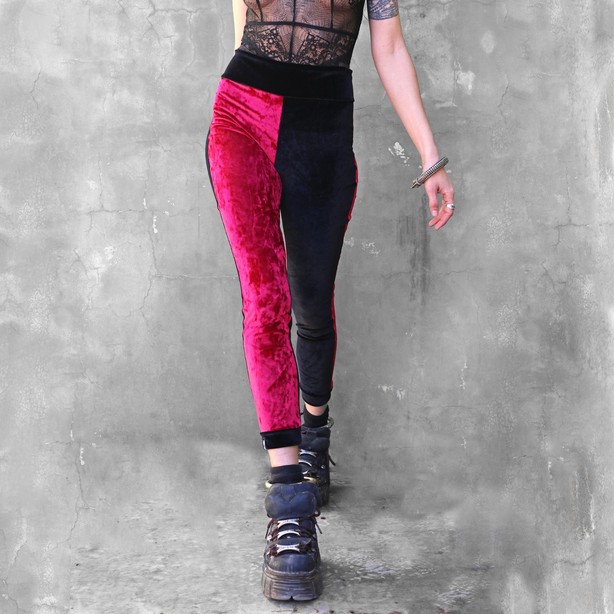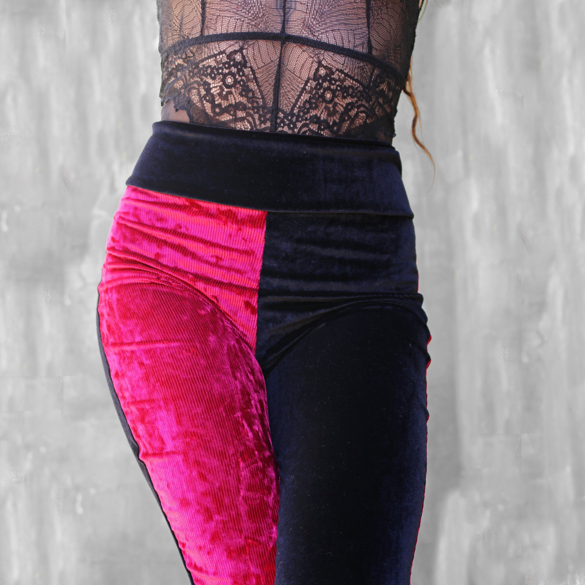 BIKOLOR LEGGINGS | BORDEAUX CORDUROY + BLACK VELVET VERSION