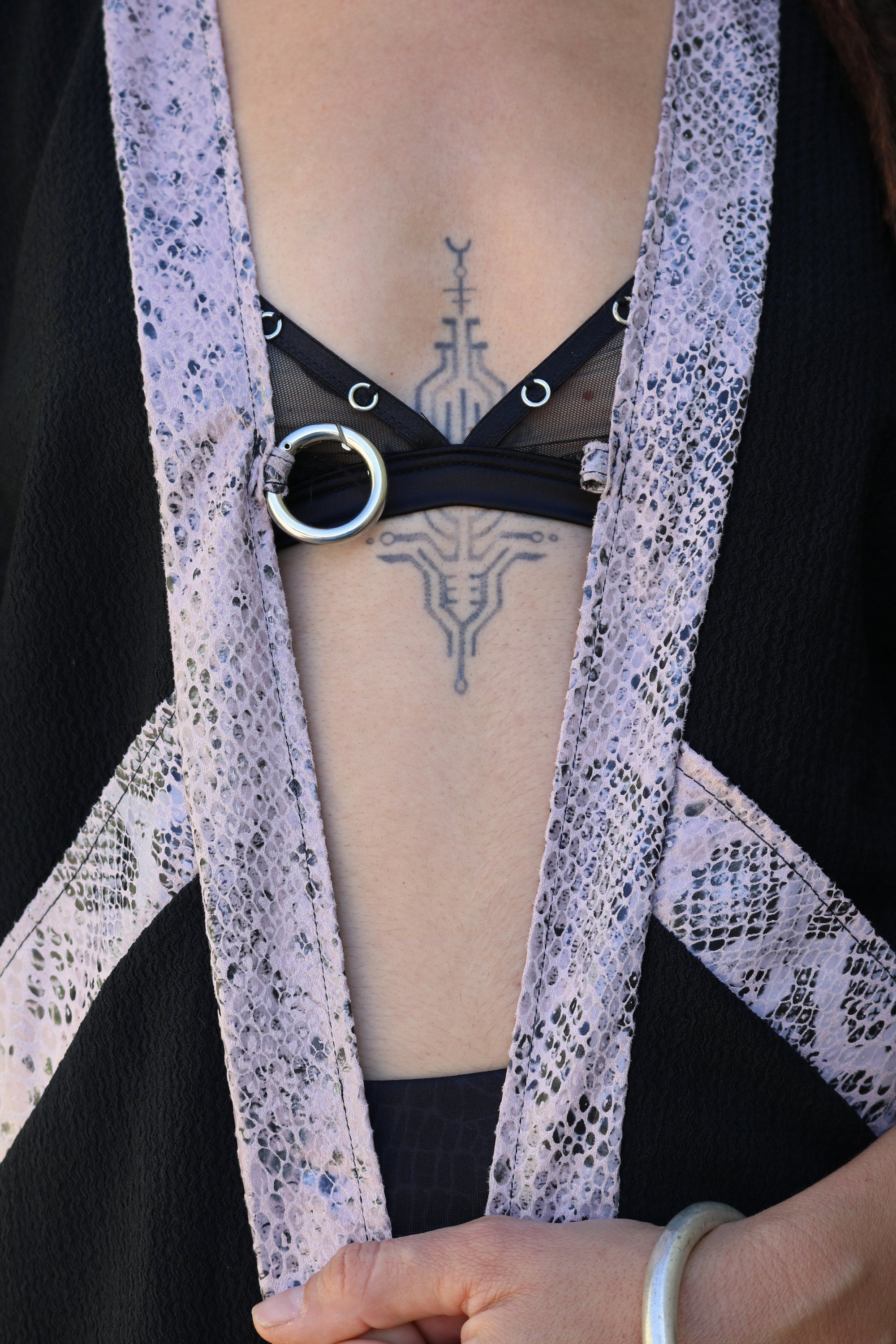 A silver-colored ring has been added to the front to close it, but it can also be removed if you prefer to wear it open.