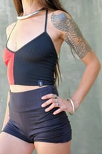 MISS QUINN CROPTOP | BLACK STRIPPED LYCRA AND SHINY RED VERSION